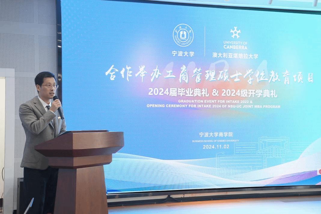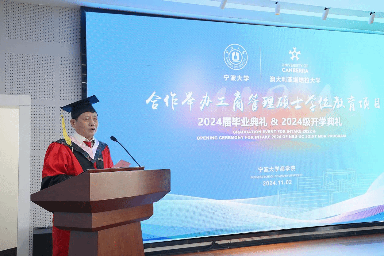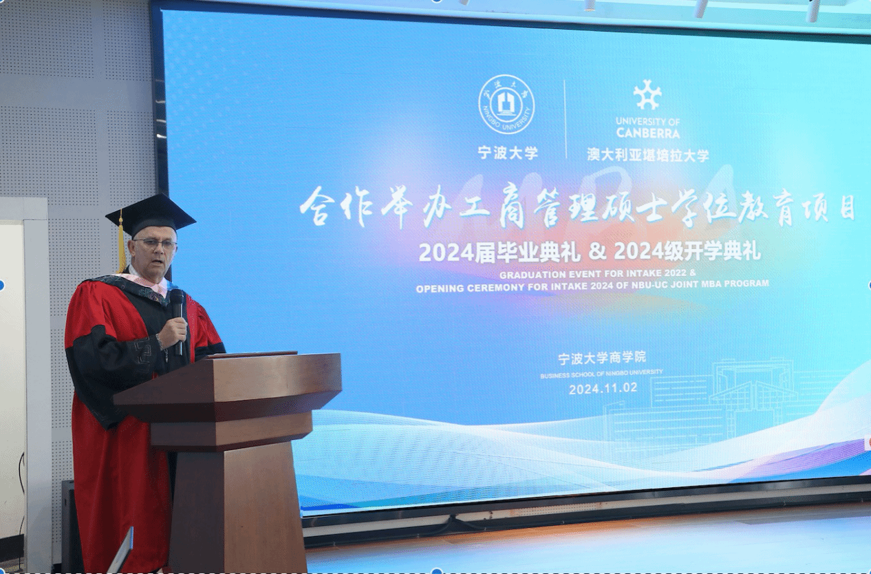 11月2日下午,色情av影片 中澳MBA项目2024届毕业典礼暨2024级开学典礼在色情av影片 五楼报告厅隆重举行。堪培拉大学商政法学院院长Uwe Dulleck、副院长Simon Hoy专程从澳洲赶来,见证这个重要的时刻。色情av影片 院长金祥荣、党委书记史宏协、党委副书记吴敏、中澳MBA校友会会长汪新宇、常务副会长兼秘书长焦名明及中澳MBA教师代表、优秀校友理事等出席此次典礼。典礼由色情av影片 副院长彭新敏主持。