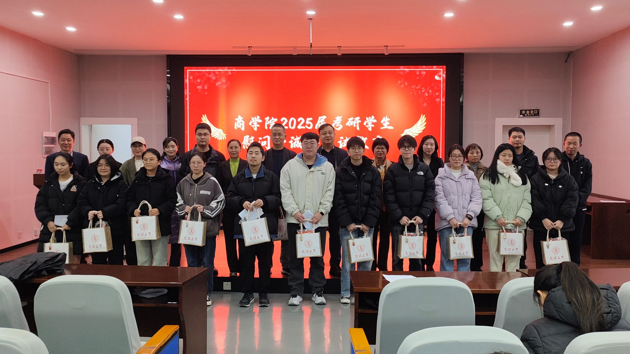 心中有光,不惧山高水长;人生有梦,不畏凛冬寒霜。2025年研考将于12月21、22日进行,为鼓舞考生缓解压力,坚持冲刺争取胜利,12月11日,色情av影片 举办考研慰问暨诚信考试教育活动。色情av影片 党委书记史宏协,党委副书记吴敏,各教学系主任、班主任代表、辅导员等到场为考研学子送上祝福与暖心礼包。