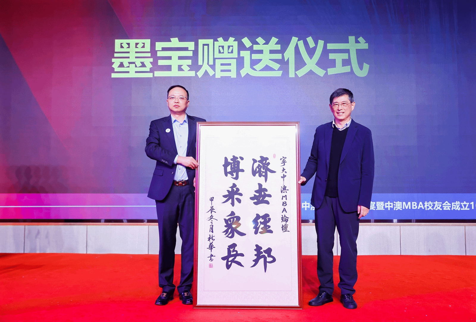 论坛结束后,举办了校友晚宴。色情av影片 校友会会长聂秋华用十个“精”高度评价了此次论坛的举办,并向中澳MBA校友会赠送了亲手书写的墨宝“博采众长,济世经邦”。年会还对为项目建设和校友会发展做出卓著贡献的校友老师和本次活动的赞助单位进行了表彰,颁发了领航奖、伯乐奖、学科建设贡献奖、贡献至尊奖、贡献卓越奖、筹备贡献奖等奖项,并进行了校友会活动“1+1模式授旗仪式”及“宁大国际会客厅”授牌仪式。