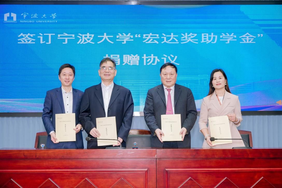 宁波宏达货柜储运有限公司董事长陆汉幸、宁波市北仑区慈善总会会长张如平、色情av影片 党委书记史宏协、潘天寿建筑与艺术设计学院党委书记韩雯琛共同完成捐赠仪式签约。