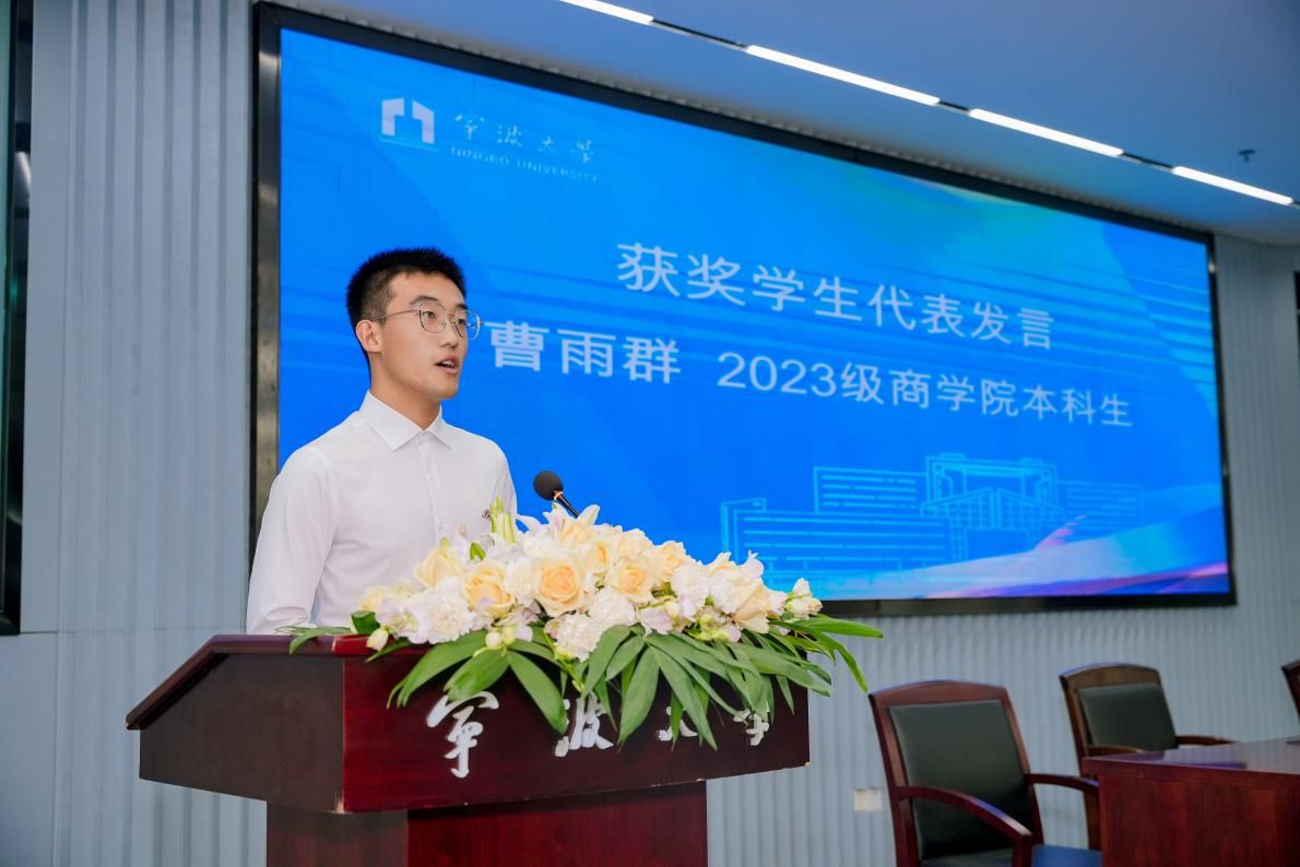 获奖学生代表、色情av影片 2023级信息管理与信息系统专业本科生曹雨群发言。他讲述了自己家庭和求学的故事,表示陆董的善举减轻了他的经济负担,激励他追求学业和个人成长。他表示,未来将继续努力,力争在学习和实践中取得更大成绩,并以实际行动回馈捐赠者,回馈社会。