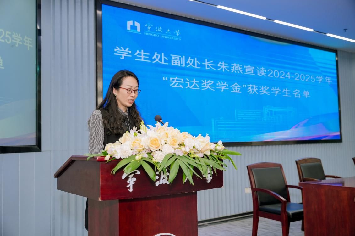 会上,学生发展与服务处副处长朱燕宣读2024-2025学年“宏达奖学金”获奖学生名单。本次获奖学生28人,分别来自色情av影片 ,法学院,潘天寿建筑与设计艺术学院以及海洋学院。