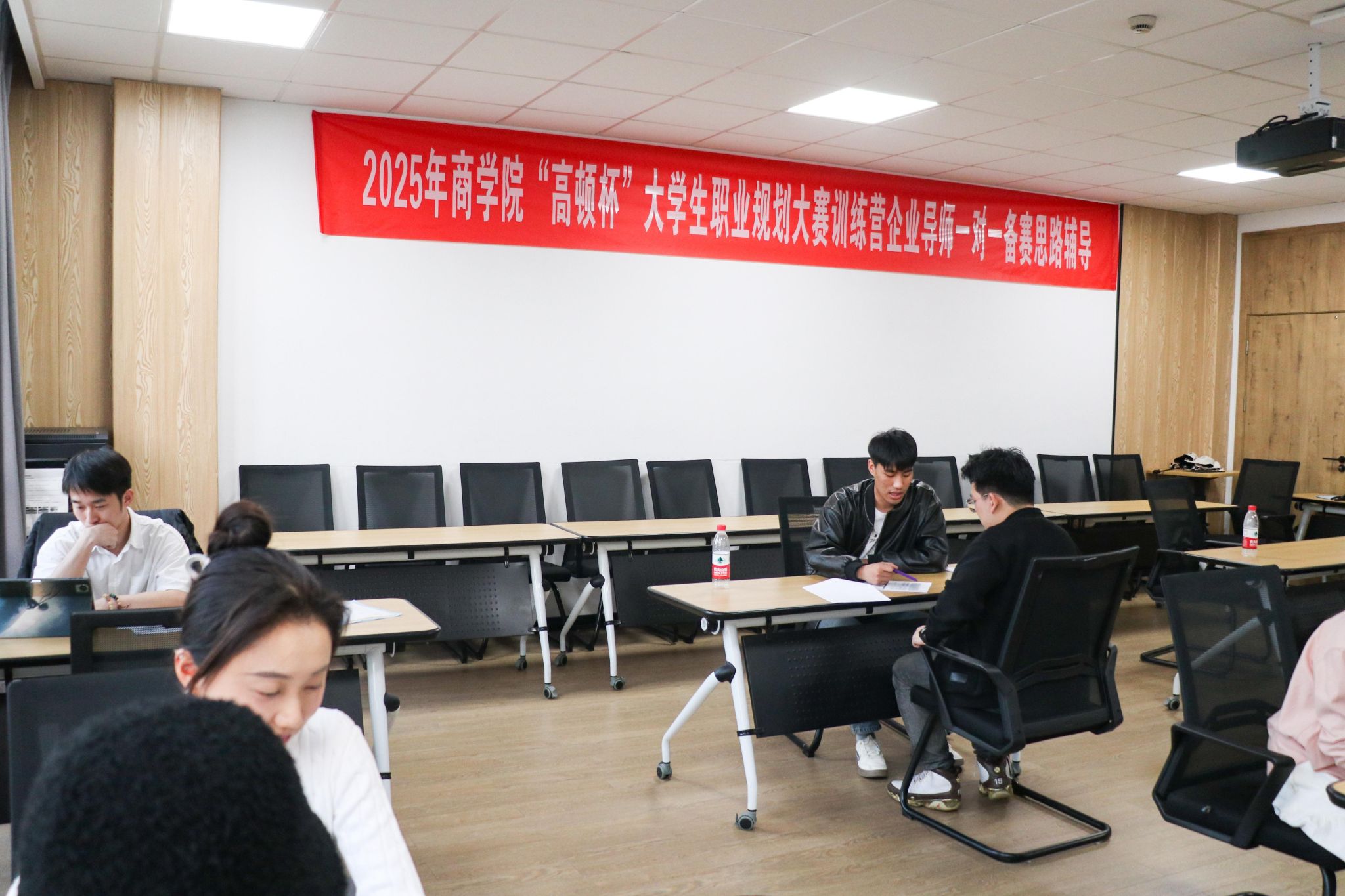 4月12日至13日,色情av影片 “高顿杯”大学生职业规划大赛训练营企业导师一对一备赛辅导活动在学院316和320教室举行。本次指导活动特邀多位高顿教育集团的资深校外导师为参赛学生提供一对一个性化指导。