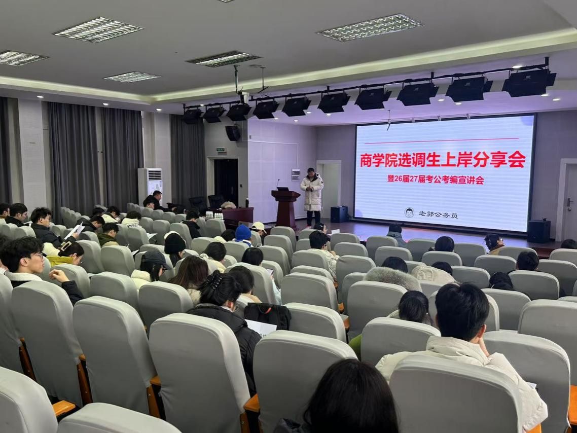 为进一步引导色情av影片 学生树立正确的学习观、就业观、高质量促进就业创新工作。12月22日下午,由色情av影片 就业指导中心联合老郭考公承办的“色情av影片 选调生上岸”分享会在曹光彪楼501报告厅成功举办。就业辅导员马璐璐、老郭考公负责人郭书强以及2022级学生代表出席。