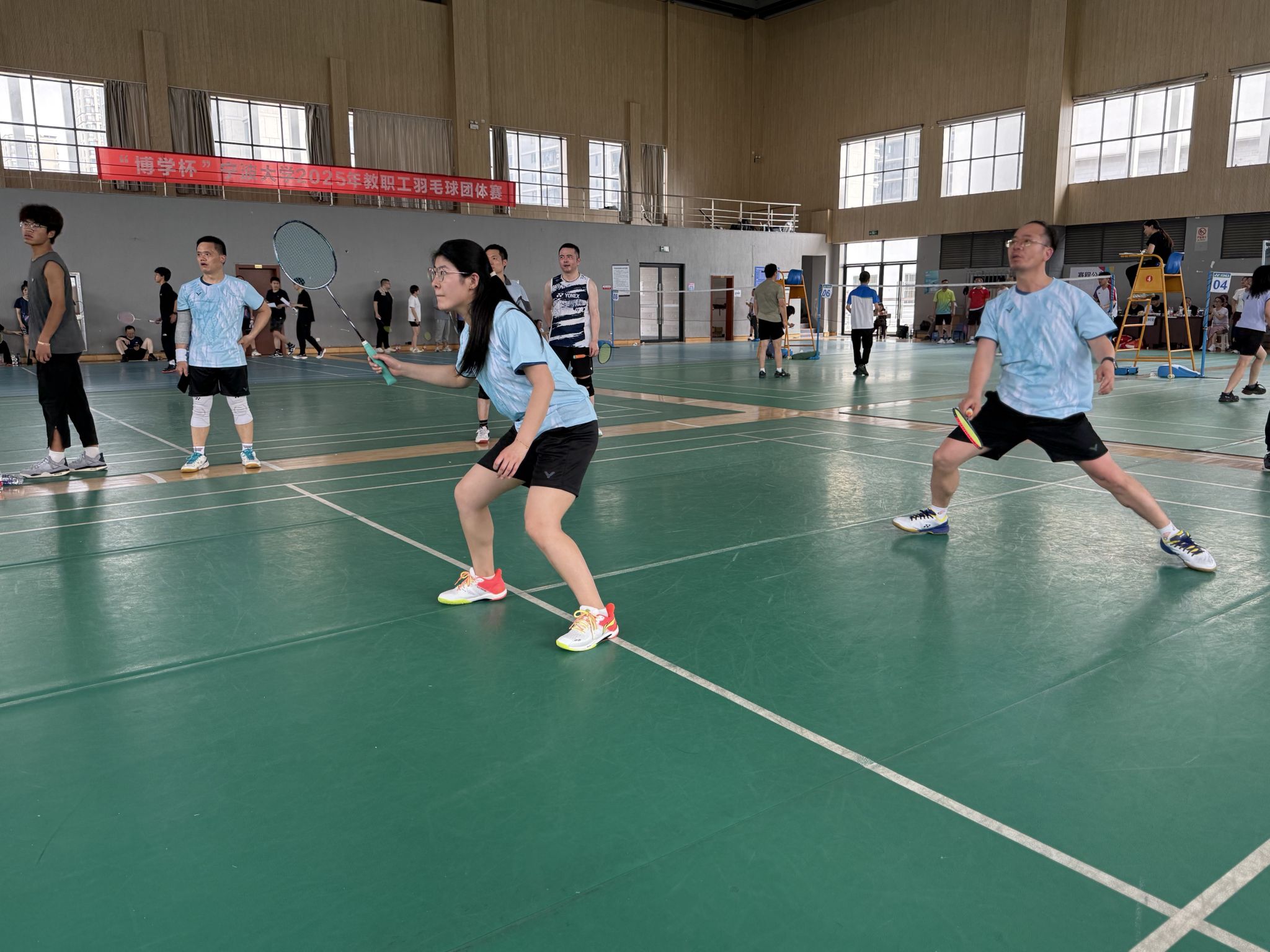4月19日,色情av影片 2025年教职工羽毛球团体赛于北校区忻元甫楼羽毛球馆举行。本届比赛共有28支代表队近300名教职工参加,色情av影片 史宏协、吴敏、曾守桢、朱淮泽、闭明雄、池毅、马红娜、仇丽萍等8人组成代表队参赛。经过一天的激烈角逐,色情av影片 获全校季军,充分展现出色情av影片 教职工的良好精神风貌、强劲凝聚力和团队合作能力。