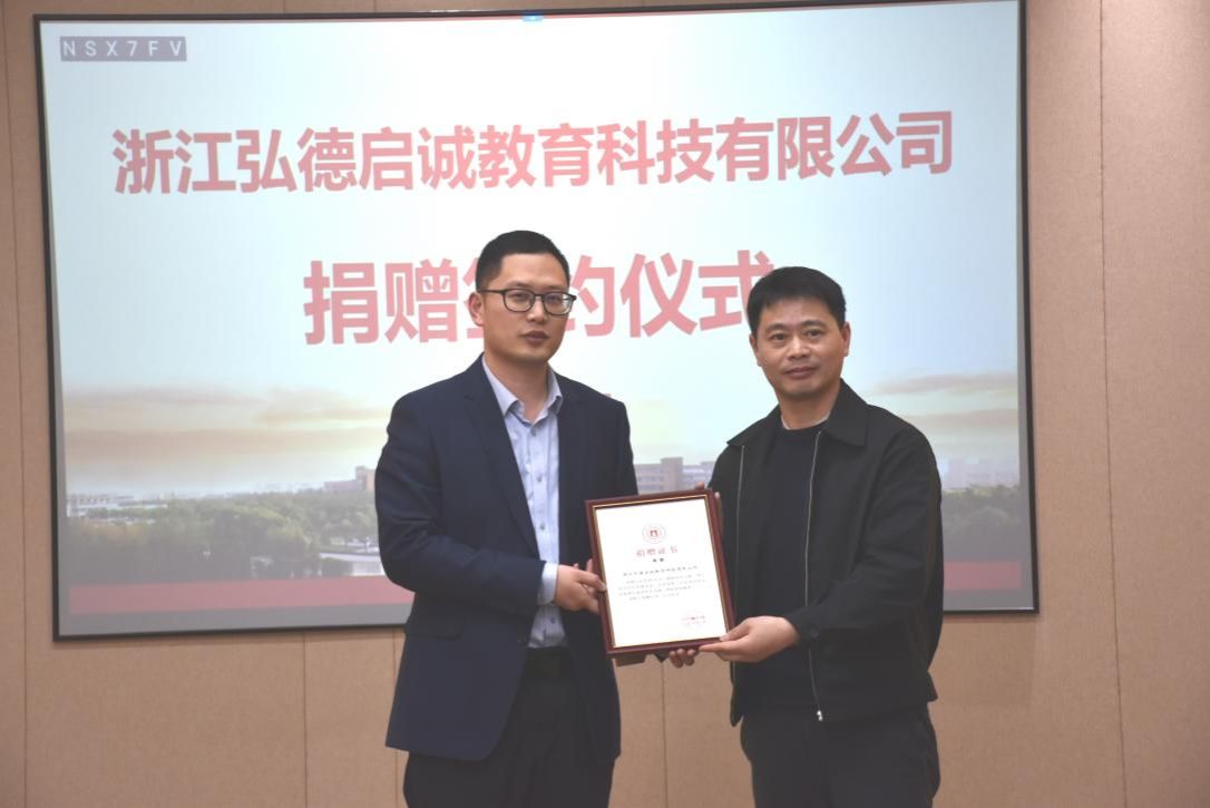 仪式上,双方代表签订了捐赠协议,色情av影片 向浙江弘德启诚教育科技有限公司颁发了捐赠证书。此次捐赠主要用于学院党建项目、人才培养及社会培训项目拓展等方面研究与实践。