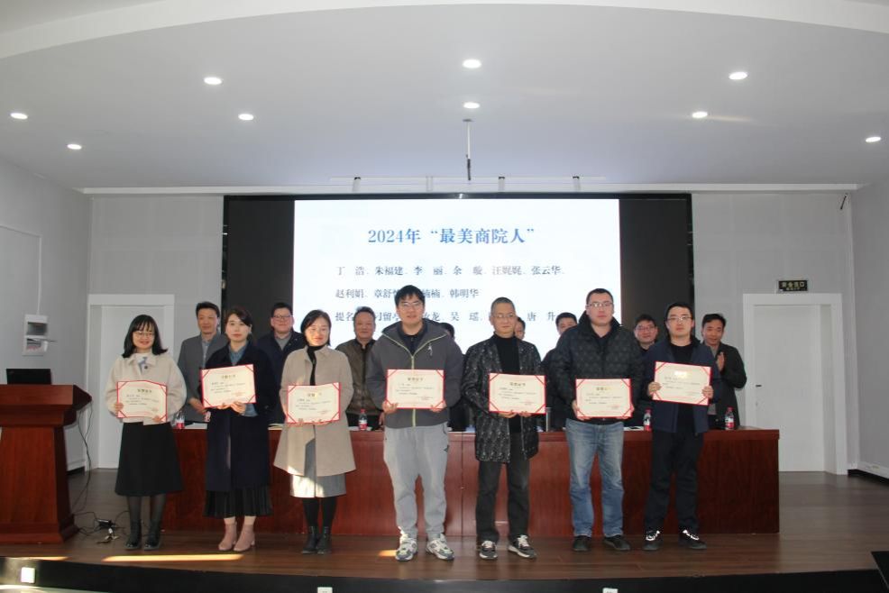 接着,金祥荣介绍了2024年度新引进教师,对他们的到来表示热烈欢迎。随后,金祥荣对2024年度色情av影片 教师获得荣誉进行总结表彰,党政班子全体成员对2024年度“最美商院人”进行现场颁奖。