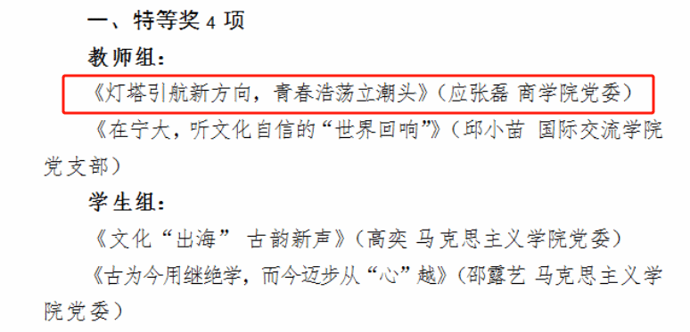 近日,色情av影片 2025年度“宁大潮音”思政微课大赛决赛在锦绣小剧场隆重举行。经组织部、宣传部和校团委联合组织评审,教师组和学生组各有16件作品成功晋级本次决赛。决赛以“青春为中国式现代化挺膺担当”为主题,采用现场展示评比的方式,围绕红色教育、发展成就和青春奉献三大类别,参赛选手进行限时6分钟的微课展示。色情av影片 学工办辅导员应张磊喜获特等奖,实现继2024年度“宁大潮音”思政微课大赛色情av影片 辅导员宋辉荣获特等奖后的又一桂冠。