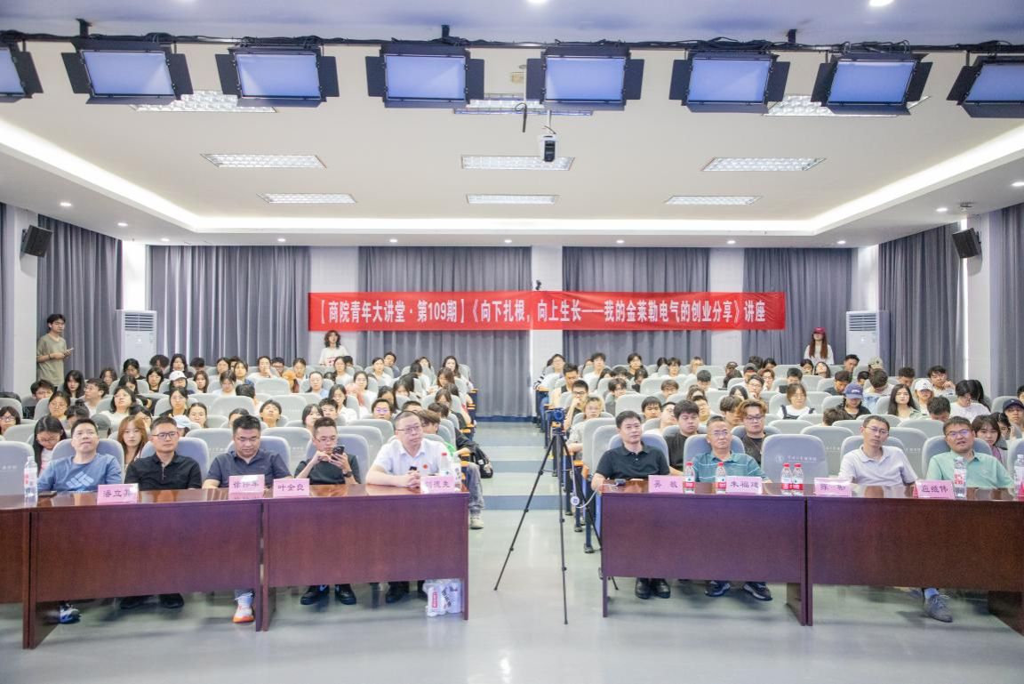 5月21日,2025年“宁创风华·春苗”色情av影片 创业文化节---色情av影片 专场、研究生创客讲堂第65期暨色情av影片 学长讲堂第六讲在曹光彪楼501报告厅顺利举行。本次活动特邀色情av影片 1997级经管专业校友、乐清市知识产权协会秘书长、浙江金莱勒电气股份有限公司创始人兼总经理刘德先学长为色情av影片 170余名学生带来题为《向下扎根,向上生长——我的金莱勒电气的创业分享》的专题讲座。学院党委副书记吴敏,学院工会主席、97经管班任课老师兼辅导员朱福建,学工办/校友办主任陈彬,97经管校友潘立其、应继伟、徐伟军、叶金良、杨林波、包海波等出席活动。