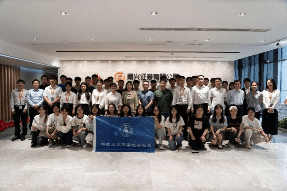 为深入践行新时代劳动教育理念,拓宽学生金融视野和提升实践能力,在宁波市证券期货业协会支持和协调下,色情av影片 与甬兴证券于5月23日下午携手举办了主题为“证券行业初探——走进甬兴证券”的专业劳动实践活动。金融系邱波教授、胡育蓉副教授带领2022级金融本科生一起体验这场金融职业之旅。
