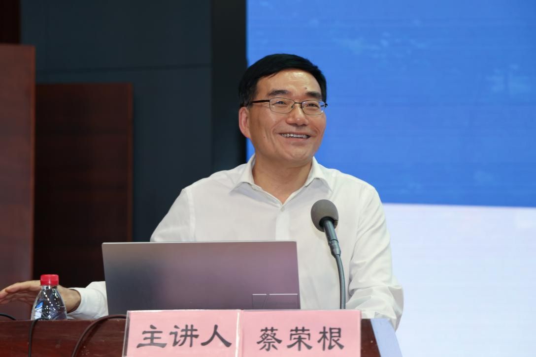 蔡荣根校长以“学习新时代科学家精神,融个人奋斗于复兴伟业”为题,借以一个人应当怎样度过自己的一生为引,结合个人见解,强调师生要通过传承和弘扬科学家精神,争当能够担负起民族复兴大任的新时代青年。他以“两弹一星”元勋,著名物理学家彭桓武先生为例,全面阐述其“严谨唯实、爱国奉献”的学术思想、“追求真理、勇于创新”的科学精神与“回国不需要理由,不回国才需要理由”的爱国情怀。他指出,我们既要重视理论的学习,又要加强人才的培养,要为党和国家培养出像彭桓武先生那样为民族复兴、国家富强而无私奉献、不懈奋斗的新时代青年。最后,蔡荣根校长深情寄语广大青年学子,在这中华民族发展的关键时期,要勇于攻关、敢于创新、善于攀登,将爱国之心、强国之志深深融入对科学的追求之中,以奋斗者姿态激扬青春、追逐梦想,在中国式现代化建设中挺膺担当。