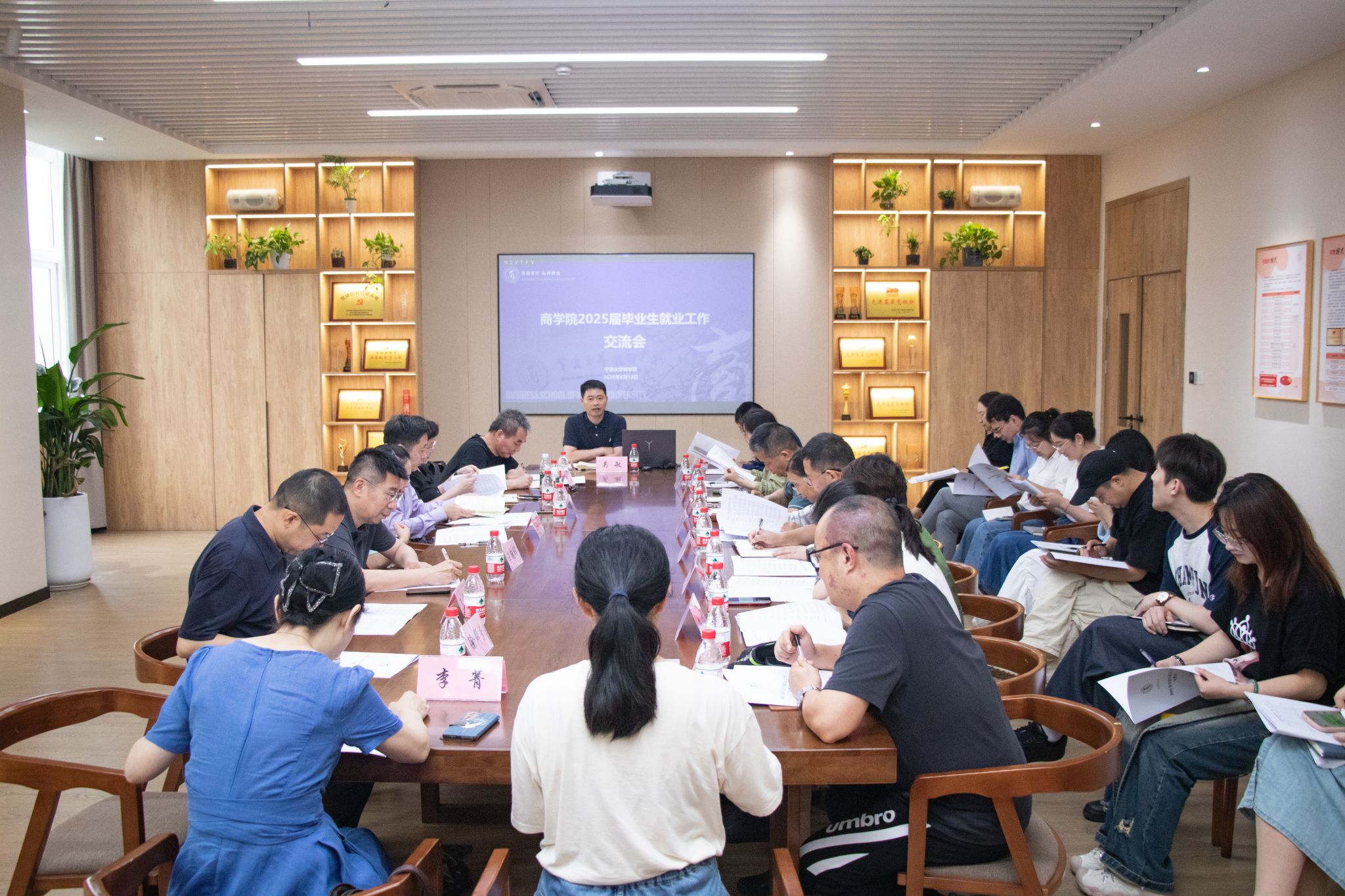 在交流研讨环节,各系主任、学位点负责人及毕业班班主任围绕2025届毕业生就业形势展开深入交流。针对目前就业工作中存在的潜在难点问题共同探讨解决方案,为后续就业工作的精准推进提供了多元思路。