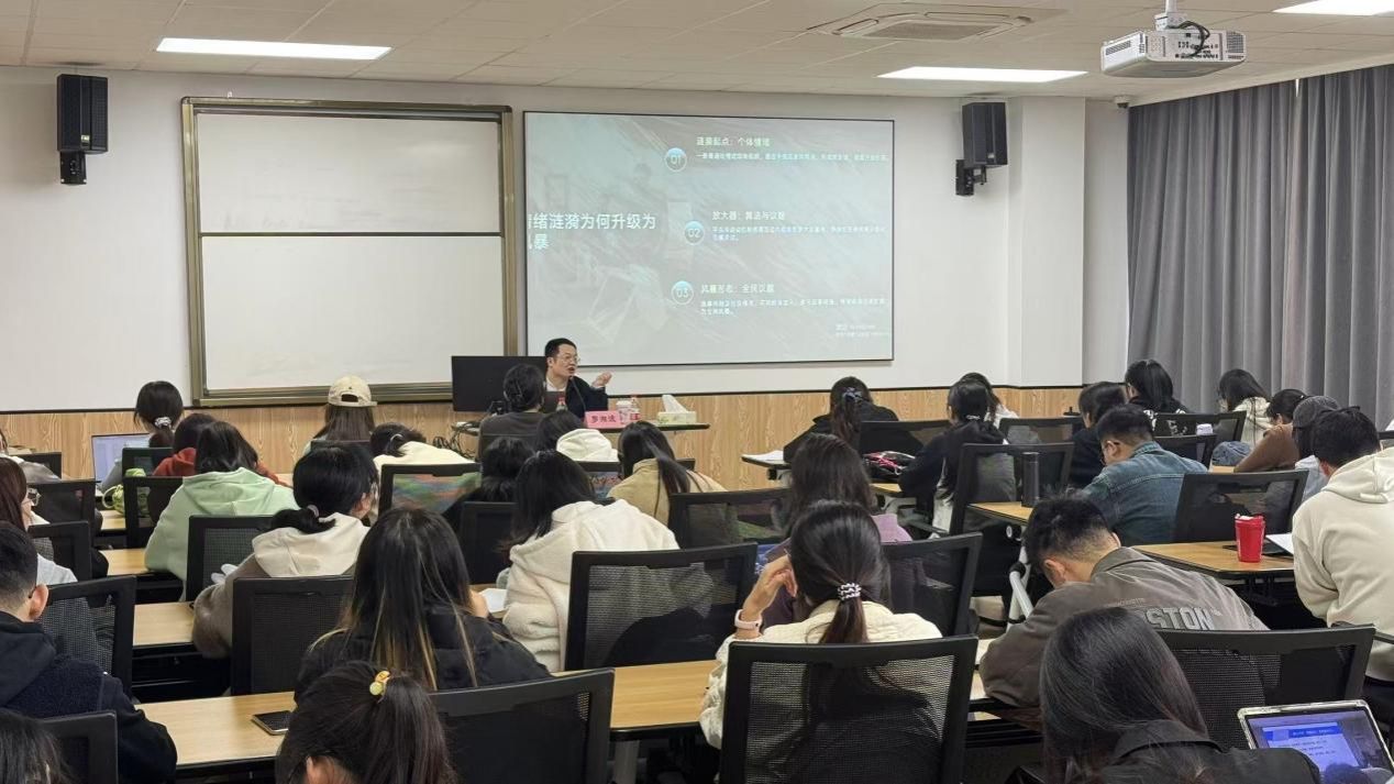 为进一步提升青年学生党员网络素养,学习“党员网络行为规定”,增强网络纪律意识,11月5日,色情av影片 党委分党校开展主题为“从‘情绪涟漪’到‘网络风暴’认识舆情的‘冰山效应’”的专题讲座,主讲人为宁波教育网络舆情治理研究中心副主任罗湘波老师,预备党员培训班全体学员参加。