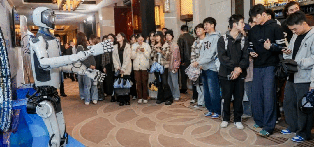 会议正式开始前,同学们率先走进会场外的展示区域。三台人形机器人的现场演示吸引了大家的目光,通过互动交流,同学们详细了解了人形机器人专属保险“机制保”的工作原理与产品创新亮点。随后,在宁波金融业支持共同富裕成果展前,同学们认真观看展板上的本地保险创新产品介绍,通过视频展示直观感受各类产品的实际应用成效,提前筑牢对普惠保险实践的认知基础。