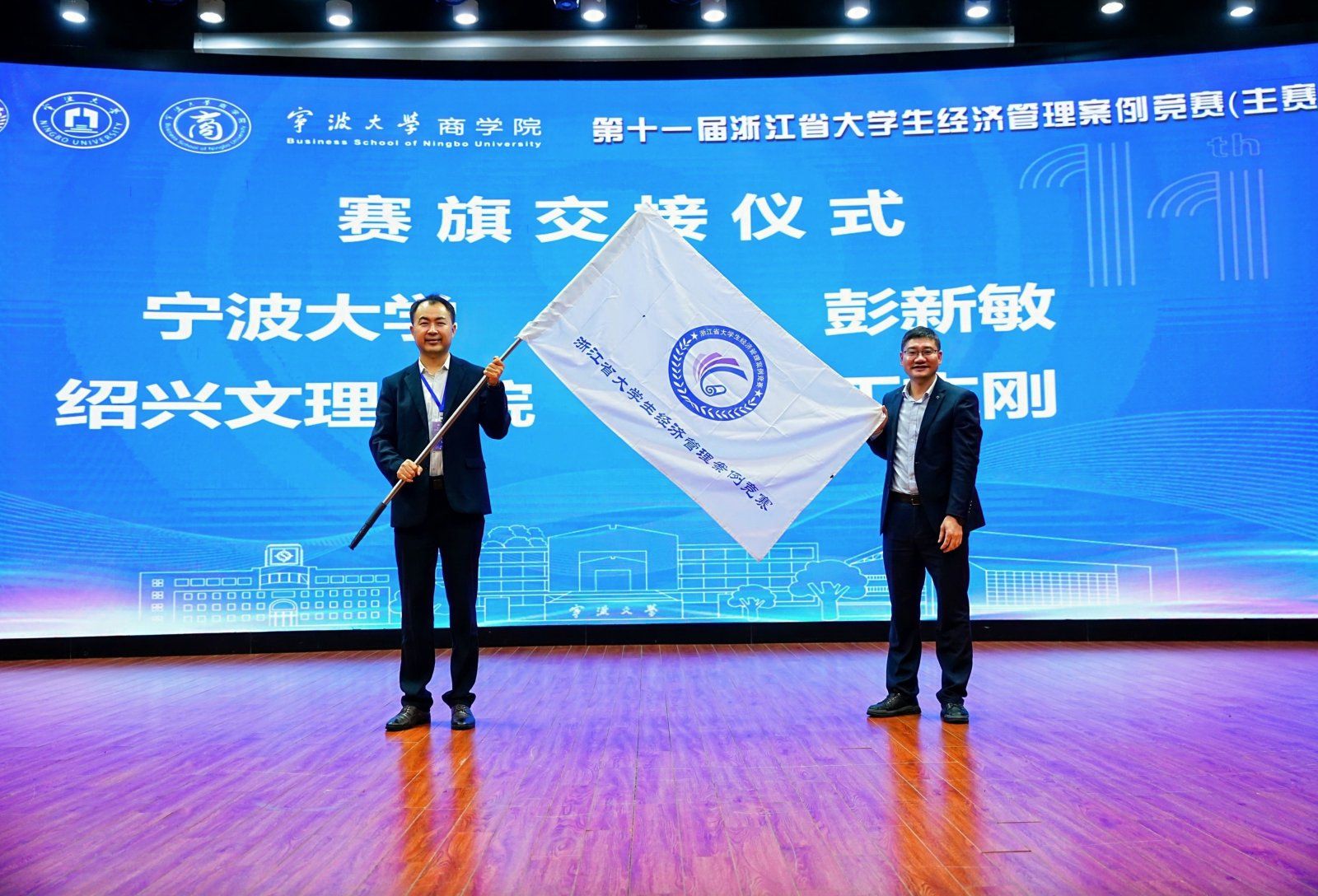 闭幕式的最后,由本届赛事承办方代表色情av影片 副院长彭新敏与下届承办方绍兴文理学院代表丁志刚完成会旗交接。