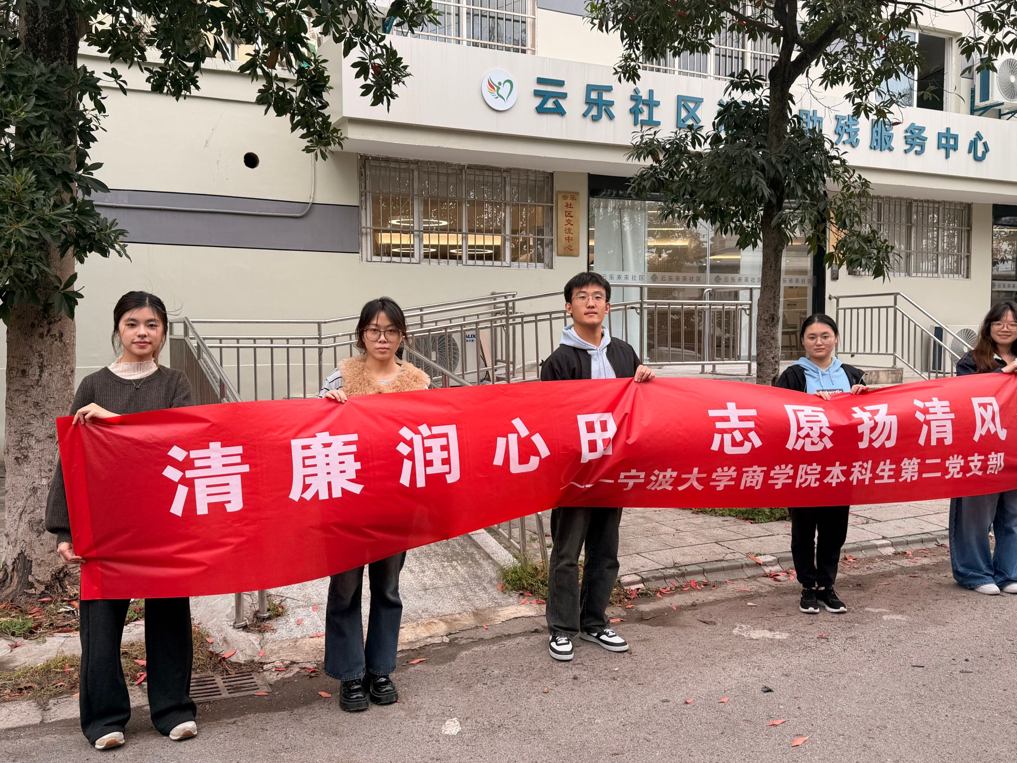 为深入推进新时代廉洁文化建设,将清廉文化融合学生党员日常学习生活,今日下午(10日),色情av影片 本科生第二党支部联合海曙区白云街道云乐社区共同开展“清廉润心田 志愿扬清风”主题志愿服务活动。通过多元化载体播撒廉洁种子,筑牢学生党员清廉根基。