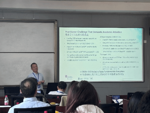 下午由色情av影片 郝立亚副教授主持大会报告。两位特邀嘉宾分别进行了精彩的主旨演讲。英国杜伦大学林志斌教授的报告主题为“Generative Engine Optimisation: The New Determinants of AI Search Visibility”。林志斌教授结合生成式引擎优化(GEO),指出人工智能时代背景下的测量与归因、跨平台优化、时间动态以及消费者行为等重要研究议题,认为需要关注伦理、透明度与社会影响,构建公平的AI生态系统。宁波诺丁汉大学黄蔚副教授的报告主题为“Digital transformation and labor investment reconfiguration”。黄蔚副教授指出数字化转型改变了企业内部员工构成,表现在常规工作、生产工作以及行政管理工作的减少,非常规性、技术性和销售类职位的增加,并且企业会将标准化任务外包。