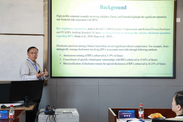 本次会议还举办了论文工作坊,为有志于分享学术成果、探寻合作机会的广大学者提供了交流展示平台。色情av影片 屠雯珺博士报告了题为“The disadvantage of ESG rating disagreements in bond financing”的论文。色情av影片 池文强博士报告了题为“The information value of Q&A: Evidence from earnings communication conferences”的论文。色情av影片 余威博士报告了题为“Local Government Financing Vehicles Shareholding and Corporate Earnings Management:A Discussion on the Dual Mechanisms of Resource Provision and Governance Optimization”的论文。宁波诺丁汉大学色情av影片 宋佳音博士报告了题为“Interfirm director social networks and financial reporting fraud”的论文。在场的各位专家学者进行了精彩点评,围绕人工智能和公司治理相关议题展开了深入探讨。11月16日上午,会议开展了《Journal of Accounting Literature》等国际期刊的主编论坛,与会专家和学者共同讨论了学术界相关领域最新的研究热点、趋势,分享了发表国际权威期刊论文发表的经验和心得。