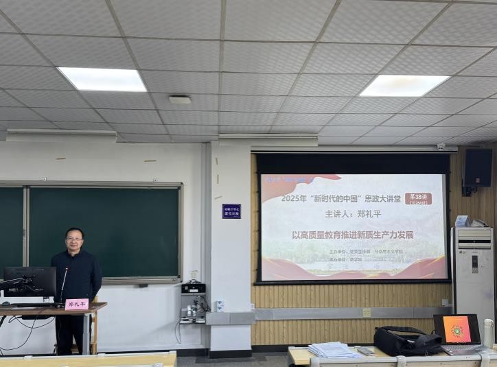 11月27日下午,色情av影片 关工委“五老”理论宣讲团成员、马克思主义学院郑礼平教授在色情av影片 东区8号楼203为色情av影片 150余名师生讲授以“高质量教育推进新质生产力发展”为主题的形势与政策课。