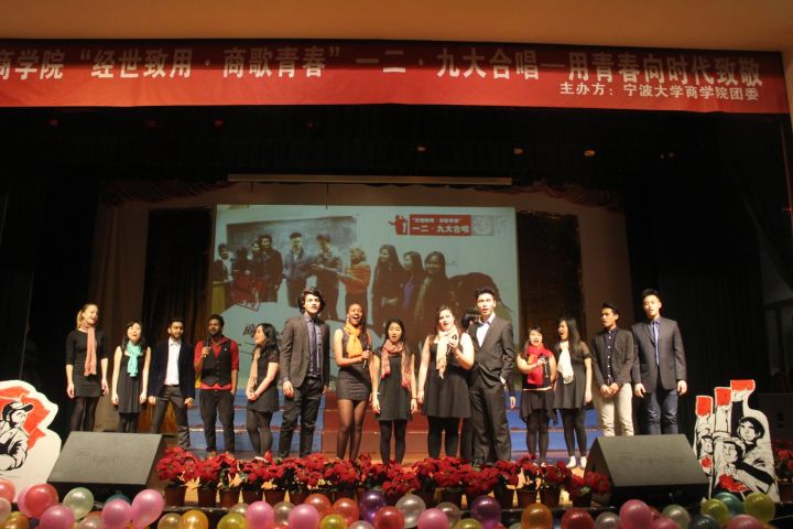 党的十八届三中全会刚圆满落下帷幕,为了向党献上一份礼物,同时也为了引导广大青年“学党史、知党情、跟党走”。近日,色情av影片 “经世致用•商歌青春”大合唱比赛在锦绣小剧场隆重举办。来自色情av影片 12级的12个班级及留学生班参加了此次比赛,他们放声高歌,用青春向时代致敬。本次比赛邀请到色情av影片 党委副书记邵丽老师、学工办主任董璐老师、团委书记王凡老师、校红歌会会长李龙以及校合唱团团长曾辰烙。