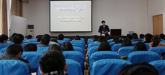12月27日上午,亚洲开发银行首席经济学家,联合国发展经济学研究院中国项目部主任万广华教授做客色情av影片 学术讲坛,为色情av影片 近100名师生做了一场题为“Urbanization and trade in developing asia”的学术报告。色情av影片 执行院长熊德平教授主持了本次讲座,副院长杨丹萍教授进行了精彩点评。