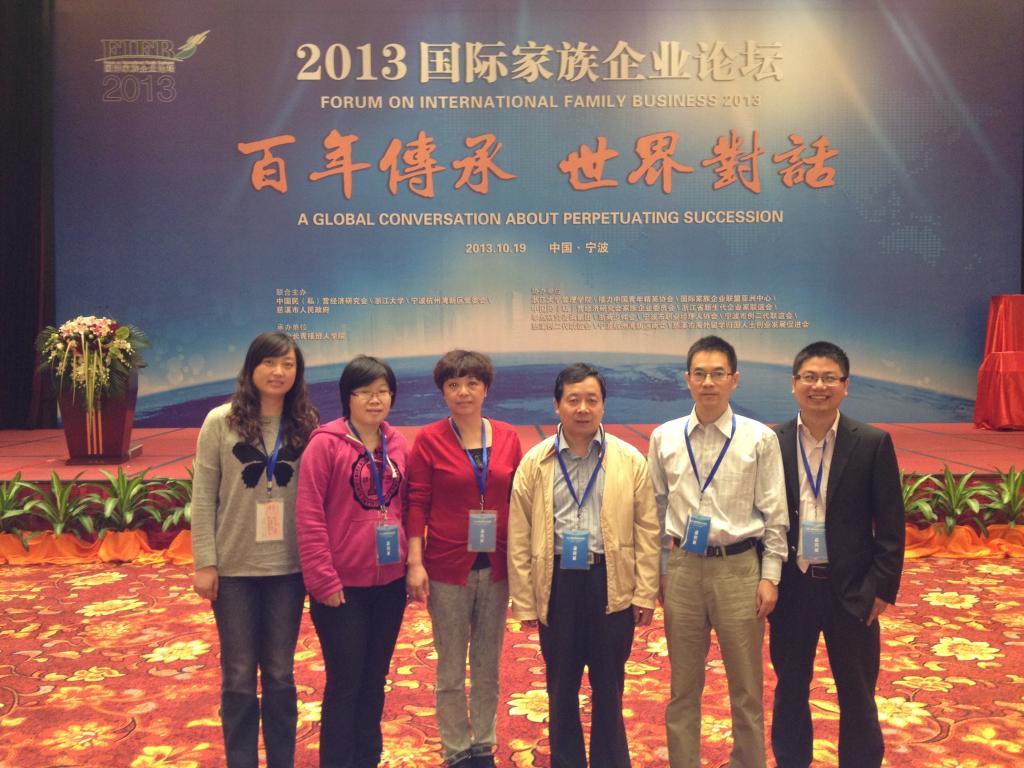 2013年10月19日,工商管理教师受邀参加在宁波杭州湾举办的“2013国际家族企业论坛”。该论坛由中国民(私)营经济研究会、浙江大学、宁波杭州湾新区管委会、慈溪市人民政府联合主办,家业长青学院承办的第七届国际家族企业论坛。