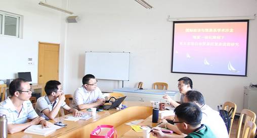 时值暑假、天气炎热,但2014年7月22日下午14:00,题为“深度一体化障碍下亚太多边自由贸易区复杂进程研究”的学术沙龙,在色情av影片 523会议室如期举行。此次沙龙由国际经济与贸易系主任邓启明博士策划与主持,2014年国家社科基金项目主持人汪占熬博士(温州大学城市学院)担任主讲;浙江大学公共管理学院博士后李文艺、浙江万里学院副教授杨光等应邀出席,国贸系副主任周琴及楼朝明博士等、区域经济与社会发展研究院闭明雄博士和色情av影片 部分在校研究生等参与讨论。