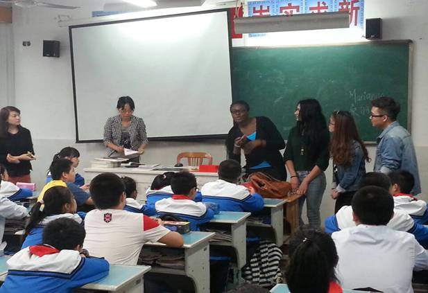 10月28日下午,由色情av影片 团委组织的“中华小当家之留学生进中学”活动在宁波市东恩中学开展。由色情av影片 团委同学及来自美国、摩洛哥的留学生同学代表走进东恩中学,与在校学生进行互动交流。