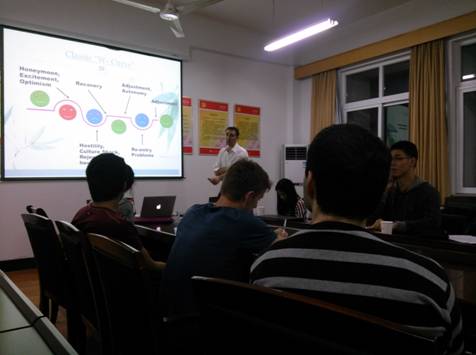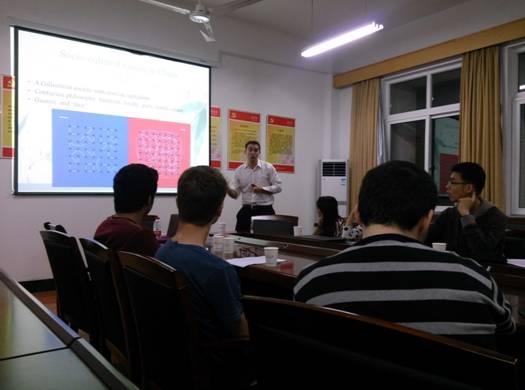 首先,来自美国在中国已有7年学习和生活经历的Alex English,从他自身的研究和经历出发,以理论联系实际的方式介绍了他对中国的文化、习俗和生活的深刻理解,并为留学生们推荐了快速融入中国的书籍材料和电子资源。随后,已在色情av影片 学习生活一年的学长R.J. Thomas分享了他在这里快乐学习、阳光生活的经历。最后,院党委副书记邵丽对新生的到来表示欢迎,并提出了殷切希望。