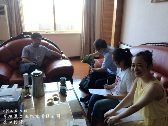 7月21日上午,色情av影片 暑期社会实践小分队——“自主创新 甬企可嘉”波大小超人分队来到了位于北仑大碶街道的宁波奥力达机电有限公司,并采访了这家企业的董事长李董。
