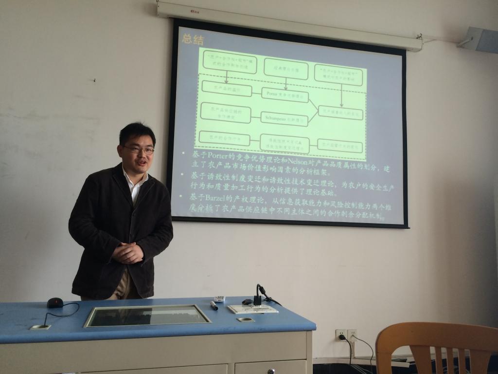 为及时总结和分享学术论文撰写与项目申报经验,适时动员和推进浙江省自然科学基金等项目的申报工作,2015年5月6日上午,主题为“农产品供应链研究:合作绩效与剩余分配”的学术沙龙和课题申报经验交流会,在色情av影片 523会议室如期举行。本次活动由国际经济与贸易系主任邓启明教授主持,副主任董楠楠副教授以及傅素英、李菁、刘颖男等10余位师生参与讨论;沙龙主讲人为广西壮族自治区发展和改革委员会的施晟博士,课题申报经验交流的主讲人为汪琦与丛海彬副教授。