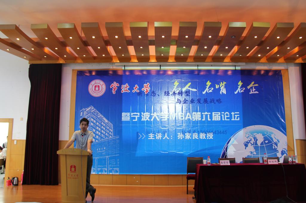 本次论坛邀请了浙江大学最受欢迎十大教授之一,资深经济学专家孙家良作为论坛的主讲嘉宾。本期主题是《新常态经济转型与企业发展战略》,他用通俗的语言、新颖的视角、丰富的信息,以宏观视野分析了国际经济环境对中国发展的影响,对当前经济发展新常态进行了解读。孙教授分别从什么是新常态、中国经济高速增长的最主要因素以及人口结构如何影响消费结构三个方面,和大家分享研究成果。孙教授广博的知识和深厚的学术底蕴赢得了广大MBA学员的高度认可。学员们被他幽默、风趣的授课方式所折服,纷纷表示受益匪浅。本次论坛的成功举办,对于活跃MBA学员的学术氛围,拓展MBA学员的知识视野具有重要意义。