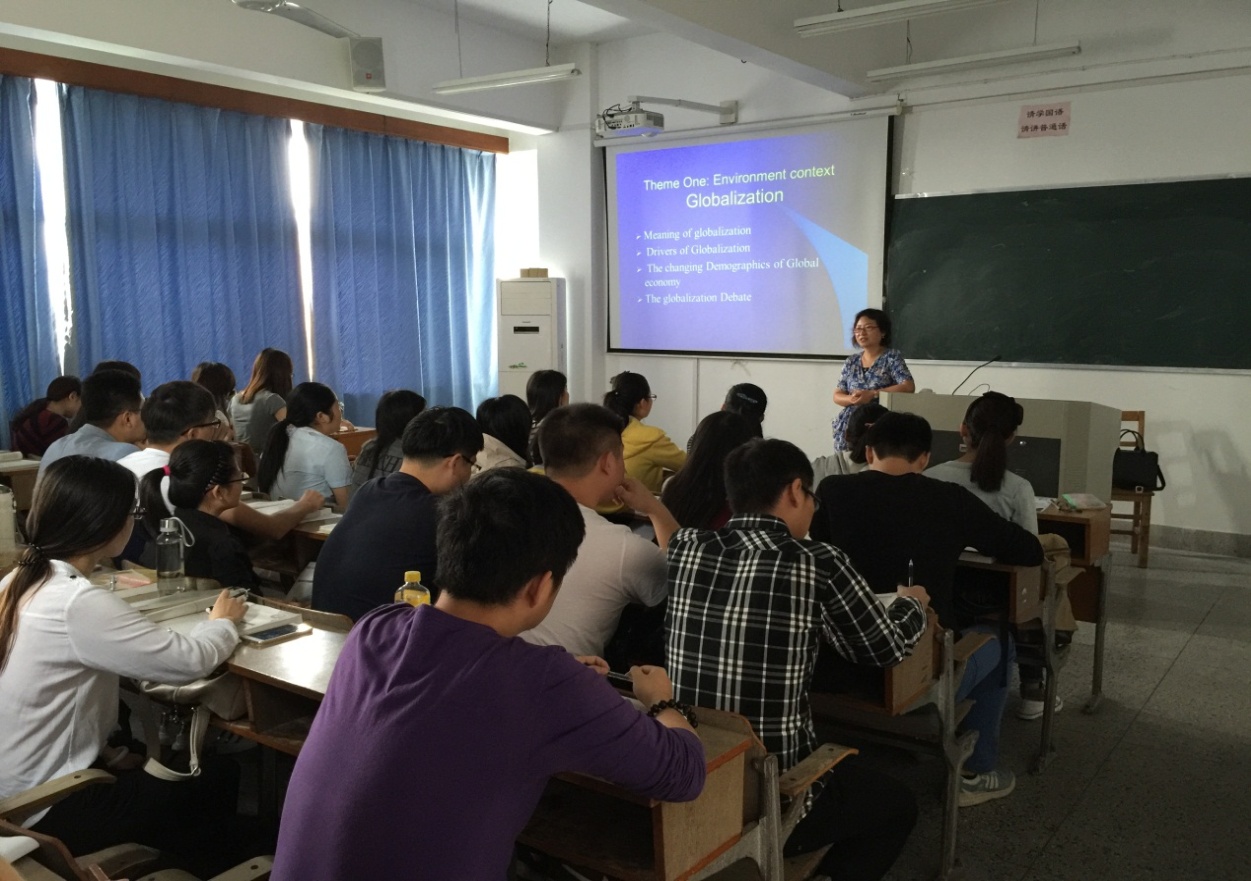 10月10日上午,浙江师范大学中非国际色情av影片 国际经济与贸易系郑小勇主任一行,前来色情av影片 国贸系进行全英文教学和留学生教育等方面交流与调研。调研组首先观摩了一节优秀教师代表陈琪主讲的全英文课程《国际企业管理( International Business Management)》,接着在色情av影片 412会议室就双方感兴趣的生源拓展、教学实施与师资培养等方面问题进行深入交流与探讨;盛沛锋副院长应邀参加座谈会,叶劲松、楼朝明、汪婷等10余位教师参与教学观摩和座谈。