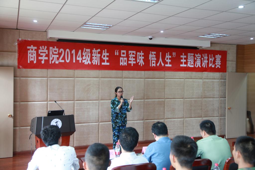 演讲比赛在“红星闪闪”的合唱声中拉开序幕,来自一连十三个排的十三名决赛选手逐一登台,有的选手以清唱军营歌曲作为自己演讲比赛的开场,有的同学选用雄壮的背景音乐衬托自己的演讲内容,有的则以诗歌的形式旁征博引,他们时而深情委婉,时而慷慨激昂,比赛全程精彩纷呈。演讲技巧的巧妙运用让全场不断惊叹此次比赛的水准和选手的实力,更让全场感动的是每一位选手用自己最真实的经历和情感,讲述了自己在军训中的蜕变,在汗水中学会严谨和坚持,在教官的耳濡目染中学会青年学生该有的担当和责任。演讲比赛结束之后,院党委书记熊德平作了总结讲话,他高度赞扬了比赛选手的优秀表现,同时希望同学们勿忘历史,心系国防,要牢固树立对革命军人的崇敬之情,珍惜军训时光,不断地提高和充实自己,同时勉励同学们坚持将军训中学习到的优秀品质贯穿于日后的学习生活中去。