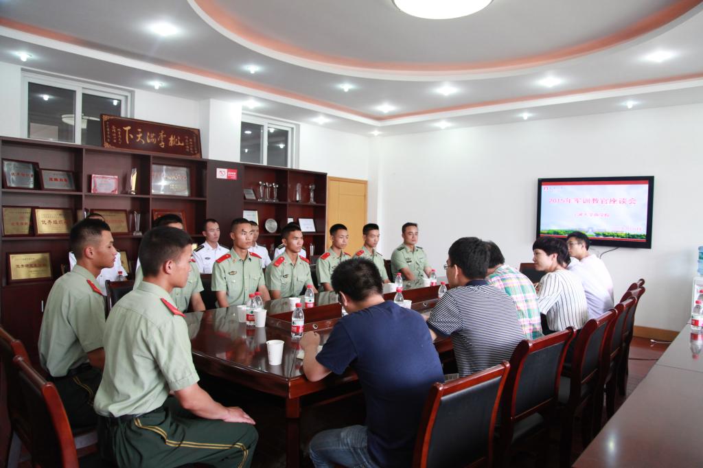 会上,每位教官逐一作了自我介绍,并结合过去四天的训练谈了自己带学生军训的体会和收获。在座谈会上,教官们充分肯定了一连各排在军训中的有斗志、能吃苦、有集体精神等优良表现,同时也指出了个别同学在军训过程中存在厌训情绪和纪律意识不强等不足。与会的老师和教官还充分讨论了现存的具体问题,分类提出了不同对策,并对圆满完成军训任务和争创军训佳绩充满了信心。邵书记在总结讲话中,代表学院向全体教官表示感谢,强调军校双方在座谈会外要继续保持充分沟通,携手在军训过程中一起做好育人工作,并祝愿各位教官与学生共同成长,让宁大的军训时光成为大家的美好记忆。