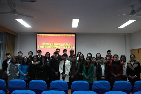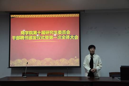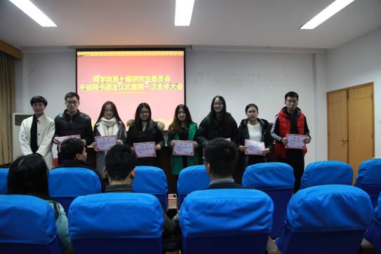 12月23日下午,色情av影片 第十届研究生委员会干部聘书颁发仪式暨第一次全体大会在学院414室举行。院党委副书记邵丽、院第十届研究生委员会秘书长陈彬、院第十届研究生委员会主席团成员、各部门正副部长及部长助理出席本次活动。