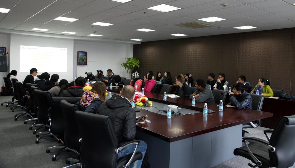 在赛尔总部的大会议室里,企业的业务员,同样毕业于色情av影片 外语系的钱青,向在场的留学生们做了精彩详细的企业发展历史及现况介绍。在这里,留学生们对赛尔企业的发展、色情av影片建设,有了更加深入全面的认识。看到同样毕业于宁大的优秀人才在这里获得进一步的锻炼平台和成长机会,学生们都纷纷流露出赞许的神情。在聆听过程中,留学生们还积极思考,针对不同方面现场提问,同企业人员展开友好的探讨与交流,也表现出对赛尔集团的兴趣与热情。