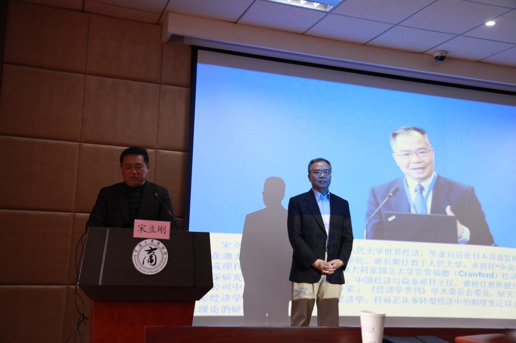 12月8日下午,著名经济学家、澳大利亚国立大学宋立刚教授做客色情av影片 ,并做了题为“中国经济增长模式转型的理论与政策”的学术报告。色情av影片 党委书记熊德平教授主持了本次报告。