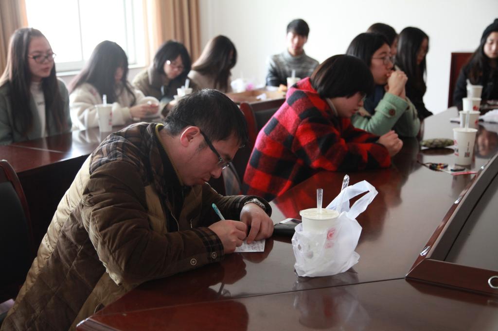 2015年12月31日中午,色情av影片 助理学期工作总结交流会在色情av影片 412会议室举行。学工办副主任汪杰峰和各办公室学生助理参加了此次交流会。此次交流会由学工办主任董璐主持。
