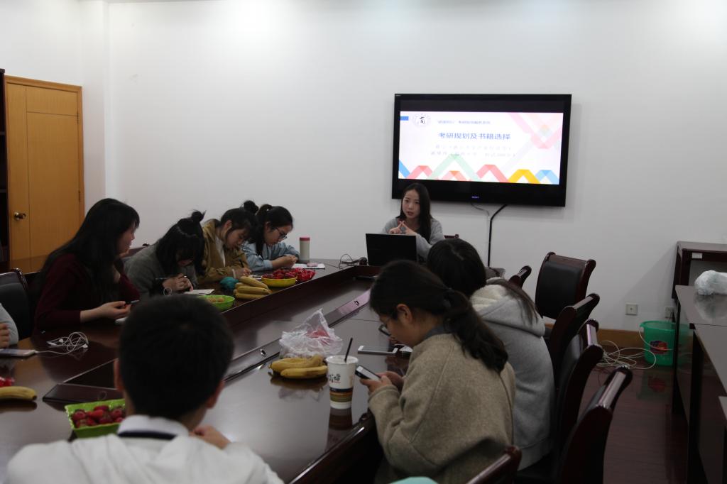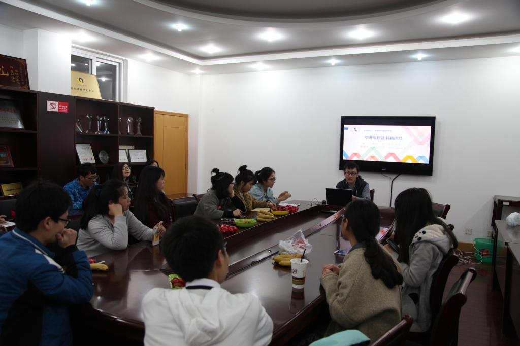 4月6日18:00,来自2012级经济学专业的崔宁和国际经济与贸易专业的游瑾珲在色情av影片 412与13级,14级意向参加考研的同学进行了一场关于考研规划与书籍选择的交流。此次交流是色情av影片 “研途同行”考研指导服务系列活动之一。