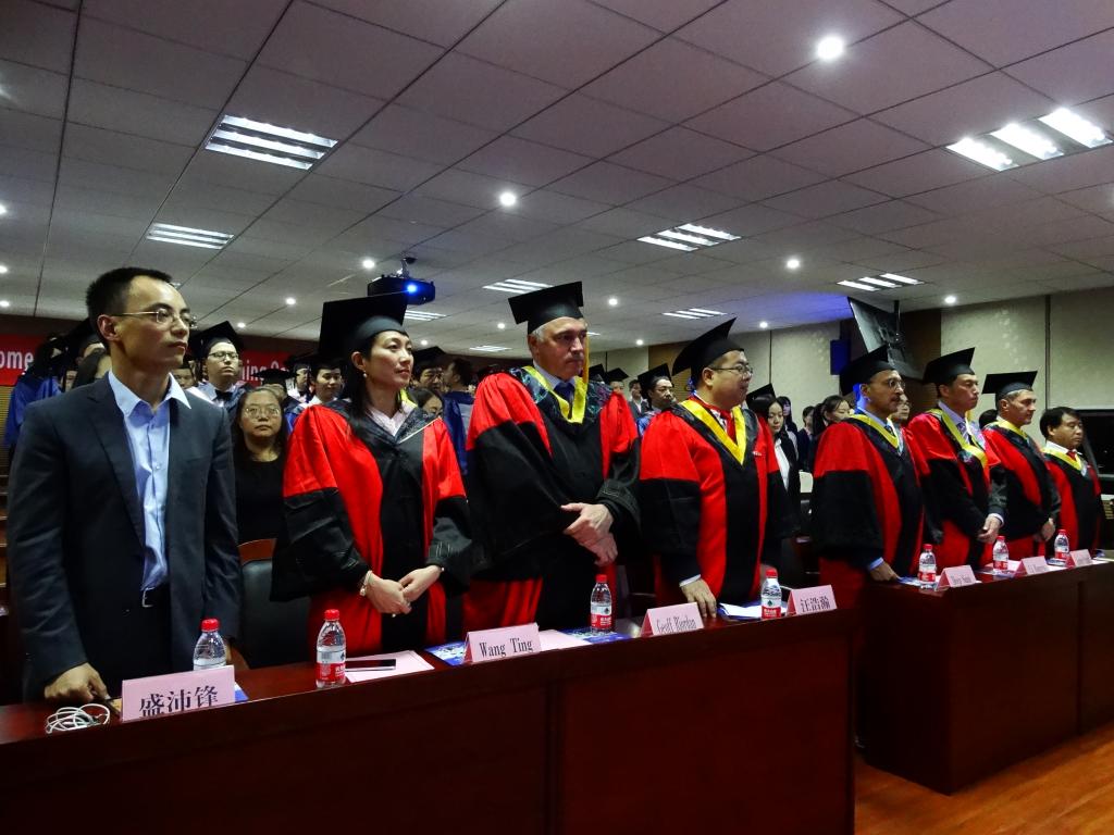 当晚八点,典礼开始。院长范柏乃教授以一句饱含热情的“Welcome!”向远道而来的澳方嘉宾和在场学员们致以诚挚的欢迎。在介绍完两校的出席嘉宾后,全体师生起立,现场奏响了中澳两国国歌。汪浩瀚教授代表色情av影片 发表了讲话。他肯定了宁大中澳MBA项目创办十六年来所取得的成果——从单纯的国外学位研修项目到受国家教育部认可的学位教育项目的提升和转变。他指出我校国际化教育发展进一步加强和发挥了我校在浙江省国际合作办学领域中的地位和作用。他鼓励2016届的毕业生们“不轻言放弃”,保持梦想和激情,通过实践,实现自己的梦想和人生价值。同时,他也鼓励2016级新生珍惜学习机会,注重理论联系实际,注重本土与国际化相结合,在各自事业发展中积累成功经验,互学互助,学有所成,学以致用。紧接着,澳大利亚堪培拉大学校长Deep Saini教授发表了真挚而诚恳的讲话,他以自己在堪培拉大学的职业生涯为切入点,侃侃而谈项目创立至今为止的变化和对未来中澳双方在众多方面开展进一步合作的殷切期待。他鼓励中澳MBA的学生们通过项目的学习,积极实践自己的商业理想,并祝福这一届的毕业生能够获得事业上的成功。