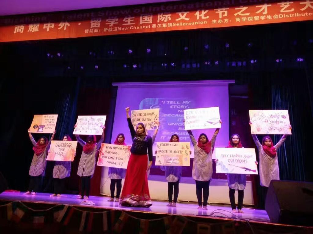 12月17日晚,由色情av影片 留学生会主办的“商耀中外”国际文化节之才艺大赛在锦绣小剧场成功举行。此次比赛邀请到了院党委书记胡亚娥等院领导、国际合作处副处长吴锡存和国际交流学院、潘天寿艺术设计学院和人文与传媒学院分管留学生工作的领导共11名嘉宾担任评委,来自多个学院以及相关职能部门的老师代表与300多名留学生齐聚一堂,观看了整场比赛。