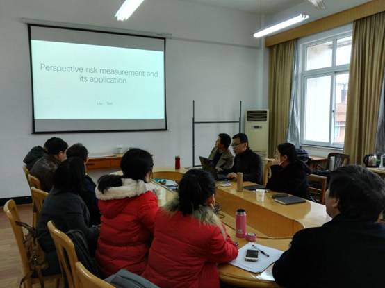整个报告气氛活跃,在场老师分别从风险测度模型的参数内涵、最优资产组合的确定、企业破产概率应用和国际期刊论文发表等方面与报告人进行了广泛的交流。