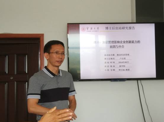 2017年9月24日上午10点,色情av影片 渔业经济与管理博士后流动站卢启程博士后出站报告研讨会在11号楼103-2会议室举行。报告主题为“知识管理影响企业创新能力的前因与中介”,报告会由教育部特聘教授钟昌标教授主持,邀请了中国人民大学等校专家参与研讨,色情av影片 20余名老师和研究生参加了此次活动。