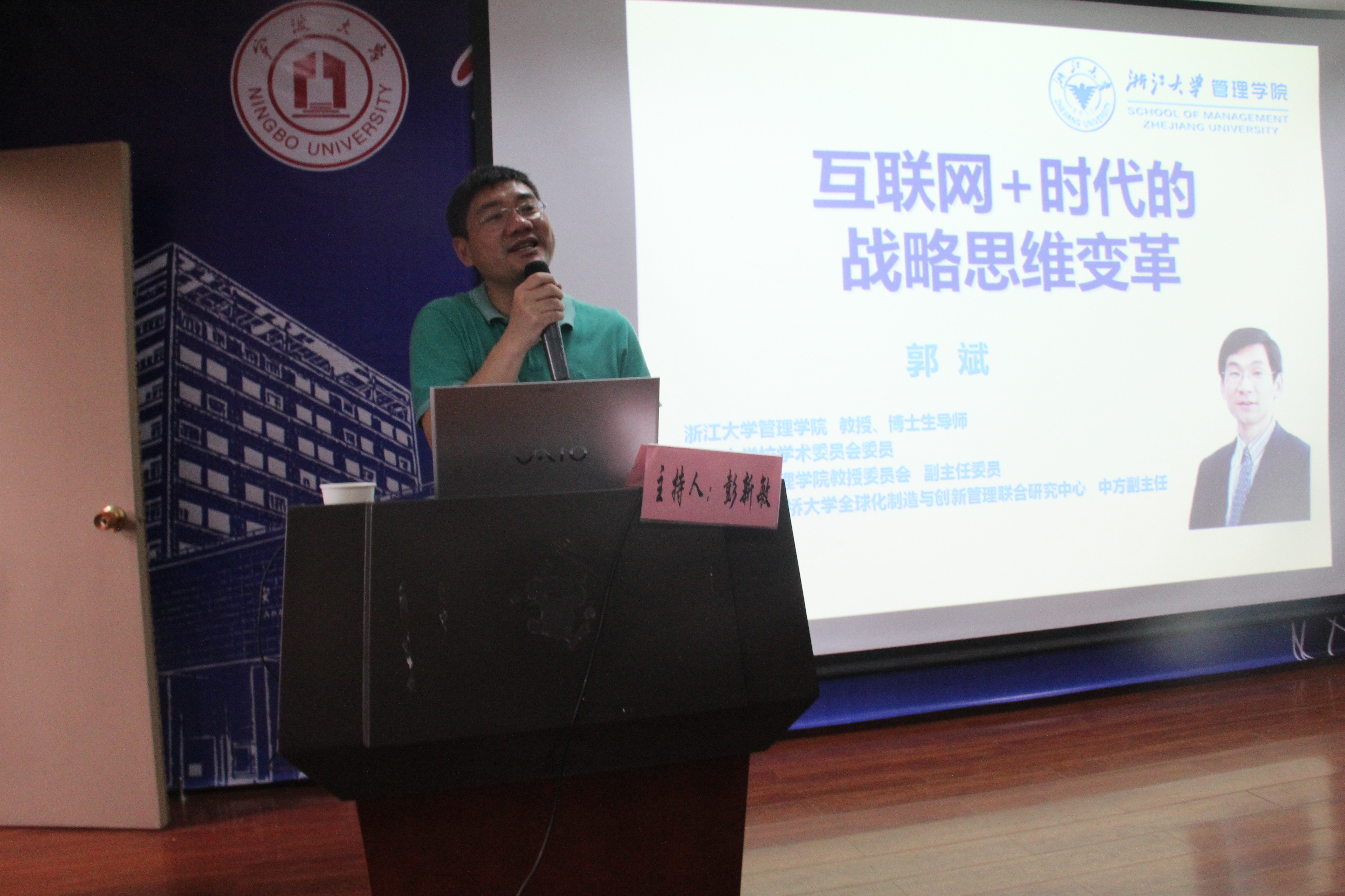 本届论坛邀请了浙江大学管理学院教授、博士生导师,浙江大学管理学院教授委员会副主任委员、学术委员会委员郭斌教授作为论坛的主讲嘉宾,本期的主题是《互联网+时代的战略思维变革》,主要阐述了互联网+对企业运营竞争的影响以及对学者思考的改变。互联网的出现的改变首先对个人层次而言,影响了消费者的决策。但也存在信息过载的问题,信息扭曲的问题。其次对于企业层次而言,互联网+则带来了诸多的挑战,价格信息的透明问题,产品成本的降低问题。郭斌教授还重点讲授了商业模式创新的兴起,传统的商业模式不能对企业产生巨大的影响,新型的商业模式正在崛起。最后郭斌教授阐述了他对“多元化”的重新思考,特此举例了富士胶片进军化妆品行业的例子,看似毫不相关的产业其实背后都是与抗氧化有关的核心技术。