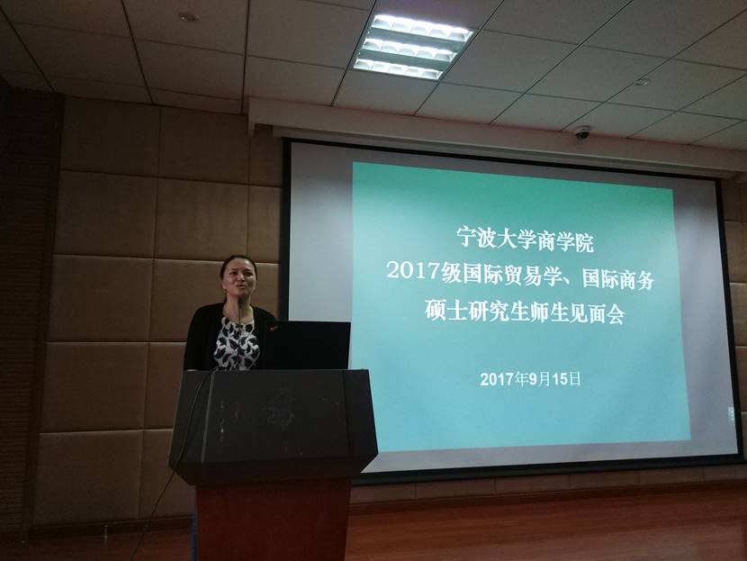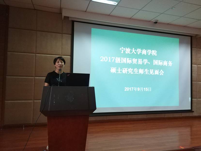 见面会伊始,首先由周新苗副院长代表学院欢迎77位来自全国各地的2017级国际贸易学、国际商务硕士研究生的到来,并从色情av影片 硕士点的设置、学硕与专硕的关系等方面介绍了研究生的管理及推进工作,周副院长还结合自己在色情av影片 的求学生涯对新生们作了寄语。接着,杨丹萍副院长与新生们分享了其多年来主持国际贸易系、国际商务专业硕士点建设的工作经验,介绍了色情av影片 区域经济学研究团队与国际贸易研究所的渊源,欢迎大家加入宁波这一国际化港城区域经济发展的学习与研究。之后,到会的硕士研究生导师们也分别向新生们介绍了自己及所在团队的基本情况和主要研究领域,并对同学们今后学习生涯致以美好的祝福。