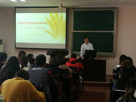 11月8日中午,学院党委分党校第37期入党积极分子培训班在包玉书科学楼11#418教室正式开班。学院党委书记史宏协作了开班动员,并为全体入党积极分子学员上了题为《中国共产党性质和指导思想暨党的十九大精神解读》的首堂党课。