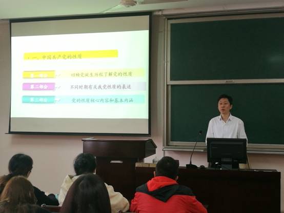 党课中,史宏协书记引用大量实例和相关史实,为大家详细讲授了中国共产党的诞生历程,党的性质和指导思想的发展脉络、核心内容与基本内涵等内容。课上,史书记还将此次主题与当下十九大精神相结合,详细介绍了十九大党章的时代意蕴与习近平新时代中国特色社会主义思想的主要内容,让全体学员在置身于新时代中国特色社会主义建设的时代背景中加深对党的性质与指导思想的认识。课堂中,学员们认真听取党课内容,详细记录知识要点,学习气氛十分活跃。