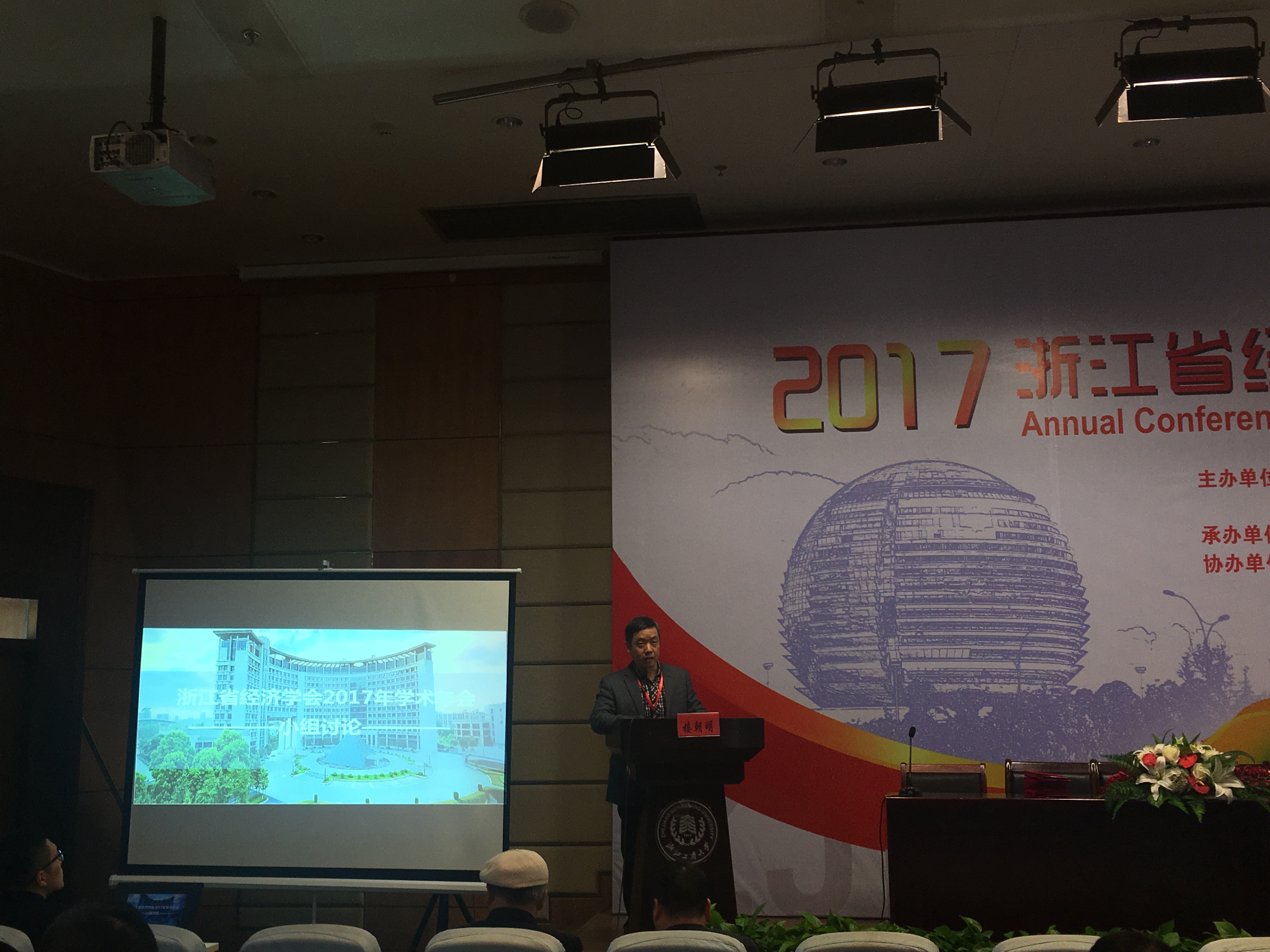 浙江省经济学会2017年学术年会于2017年12月1-3日在浙江工商大学召开。年会由浙江省经济学会、浙江工商大学主办,浙江工商大学经济学院承办,商业经济与管理杂志社、浙江省一流学科(A)——应用经济学(浙江工商大学)协办。会议期间还举行了浙江省高校经济学院院长论坛和浙江省经济学会理事会议。这次会议的主题是“新阶段与新动力:浙江发展的理论与实践”。