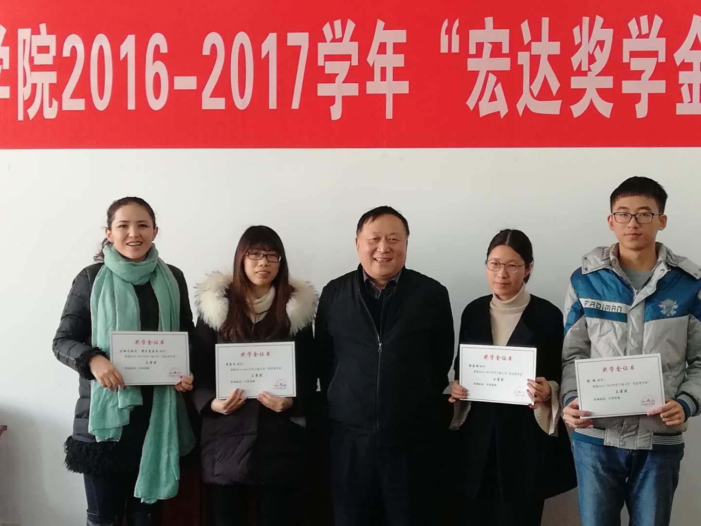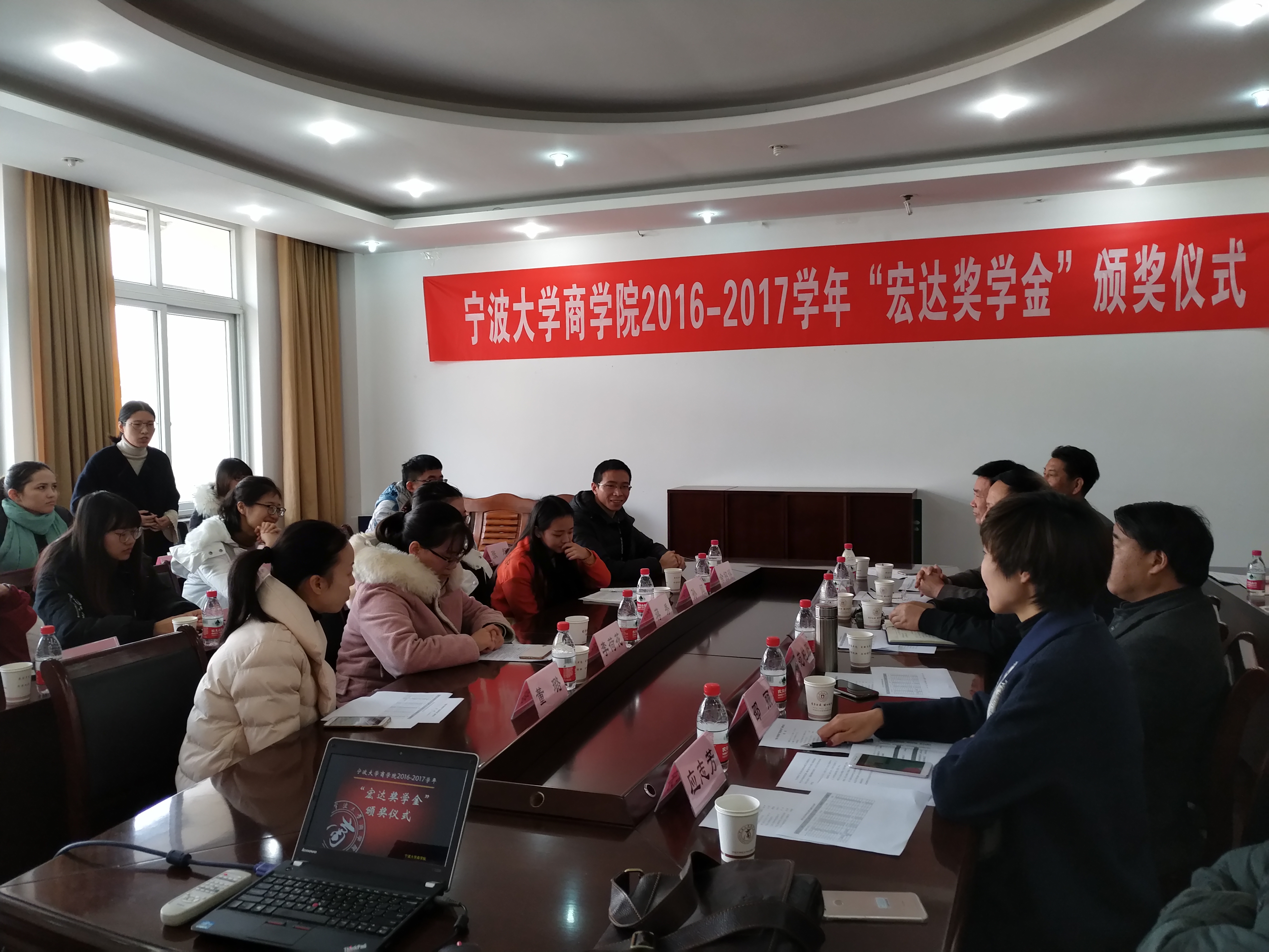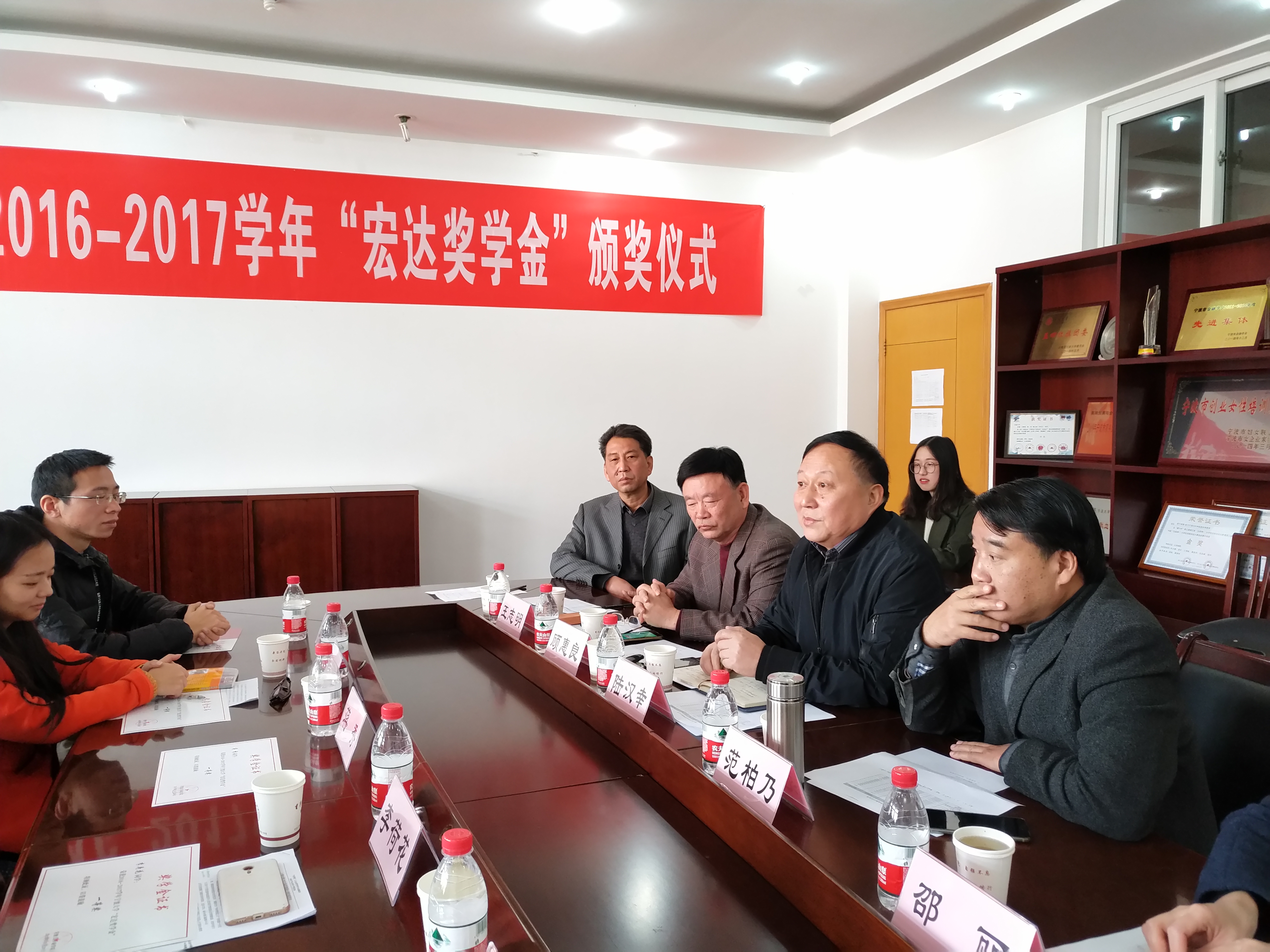 2017年12月9日上午,色情av影片 2016-2017学年“宏达奖学金”颁奖仪式在色情av影片 412会议隆重举行。宁波宏达货柜储运有限公司董事长陆汉幸、原宁波市北仑区王志明区长、原宁波市北仑区人大顾惠良副主任、色情av影片 院长范柏乃、色情av影片 工商管理系教师应志芳及16名获奖学生出席颁奖仪式。色情av影片 党委副书记邵丽主持颁奖仪式。